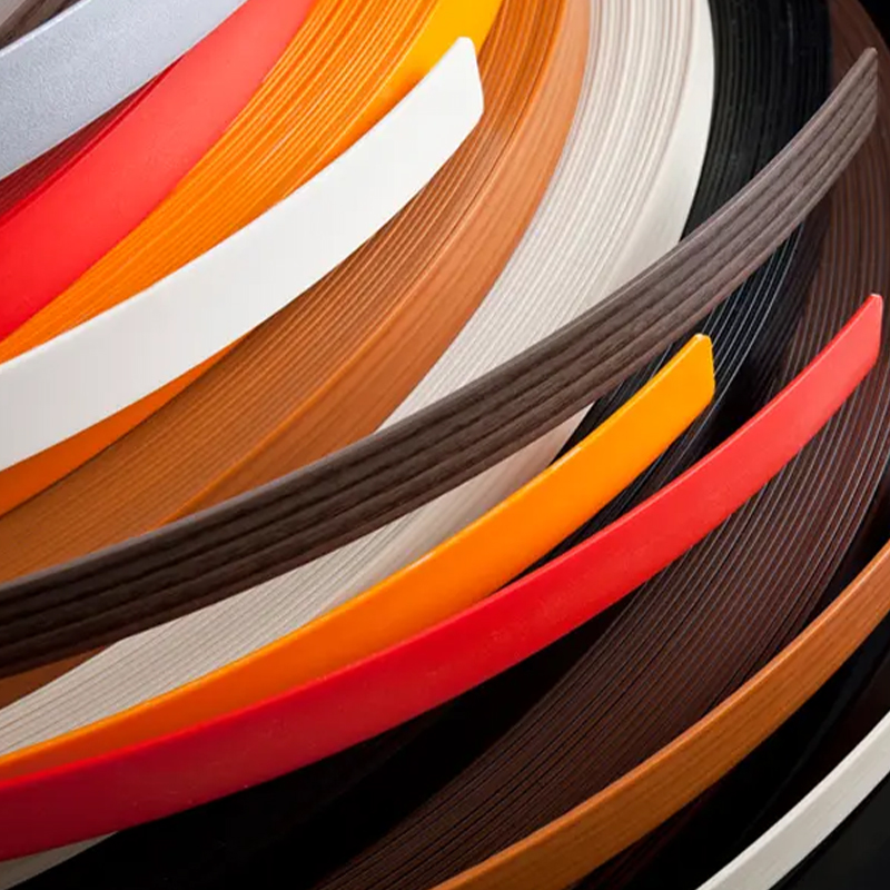 Ensfarget PVC-kantbånd har blitt en uunnværlig komponent i møbelproduksjon og interiørdekorasjon. Denne kantbåndet er laget av polyvinylklorid (PVC) gjennom ekstruderingsstøping kombinert med avanserte overflatebehandlinger, noe som resulterer i et materiale som balanserer styrke, fleksibilitet og estetisk allsidighet. Med tykkelsesalternativer fra 0,35 mm til 1,2 mm og bredder fra 12 mm til 60 mm, tilpasser den seg godt til ulike møbelpanelstørrelser og designkrav, noe som gjør den egnet for skap, tilpassede møbelkanter og interiørdekorasjoner.